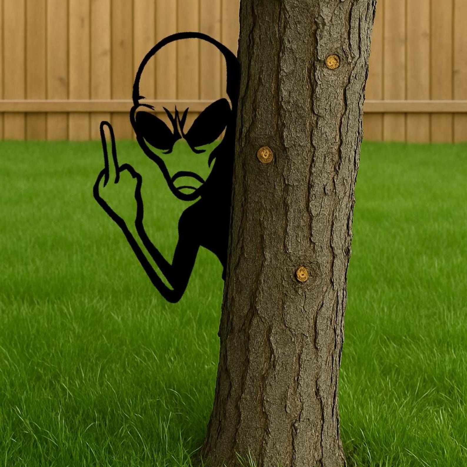 🖕👀Crafted from durable materials, this extraterrestrial prankster peeks from behind trees or posts with an unmistakable attitude.