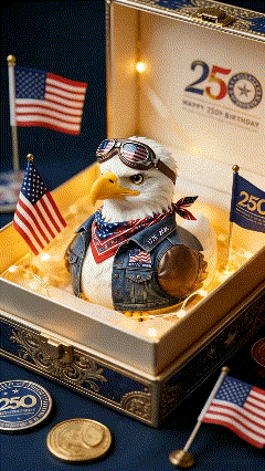 🦆 Celebrate 250 Years of American Freedom. This limited-edition commemorative duck is a playful tribute to the 250th anniversary of America's independence. Dressed in patriotic attire, complete with a colonial hat and a medal of honor, it features elements that honor the nation’s history and the spirit of freedom.