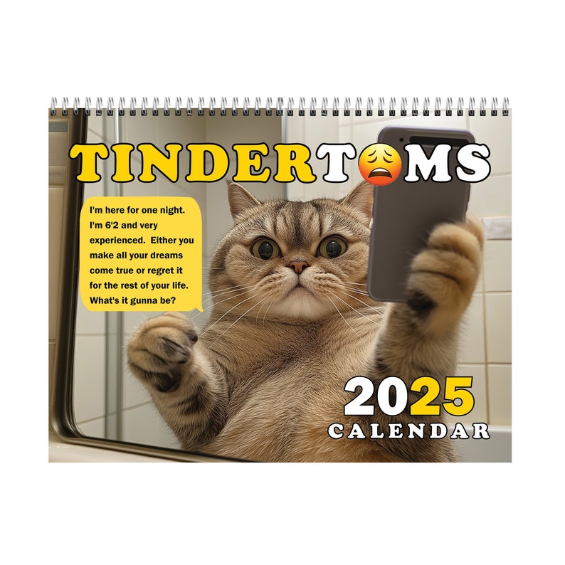 😻This laugh out loud calendar features a purr-fect collection of whimsical cat photos that depict our favorite feline friends navigating the world of online dating.