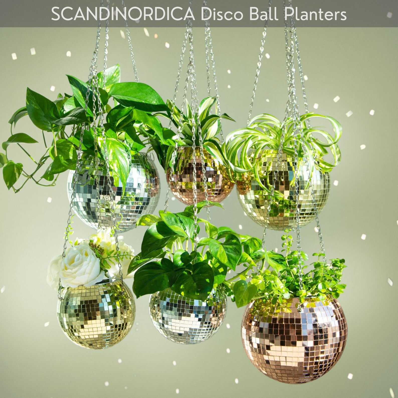 This hanging disco ball planter is ideal for succulents, cacti, kitchen herbs, flowers and other houseplants.