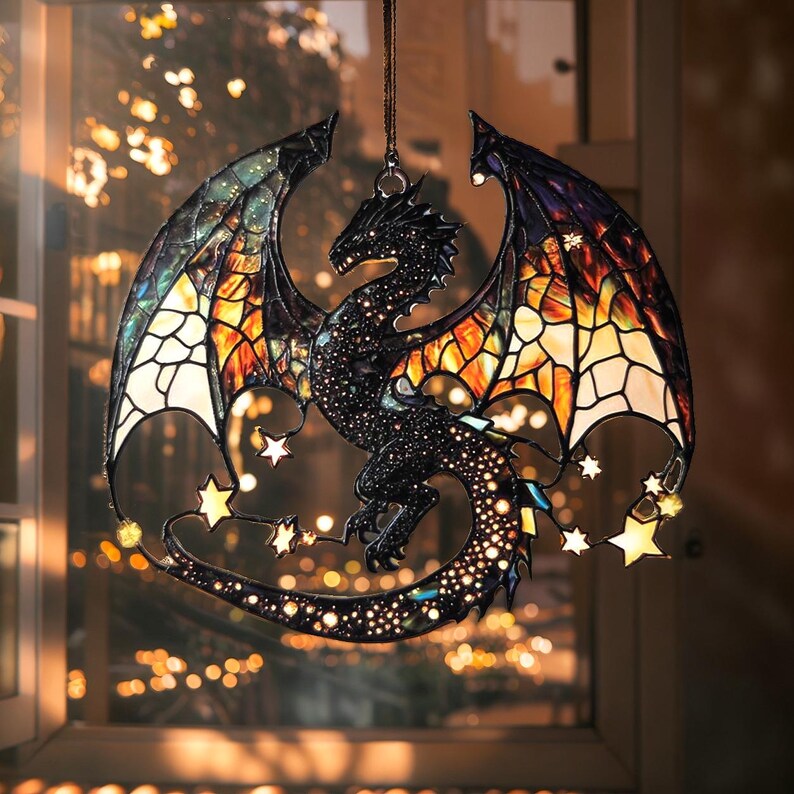 🐲🐲This beautifully crafted acrylic window hanging features a majestic dragon, making it the perfect décor for fantasy enthusiasts and avid readers alike.