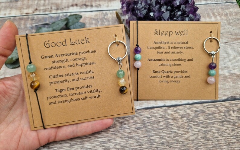 ✨The text attached to the card explains the spiritual support this bracelet and keychain will bring you.This is a perfect gift for family and friends.