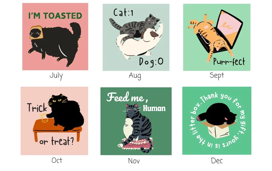 🐱 Cat-ch you later! Treat yourself (and your walls) to the purr-fect calendar for 2025, or give it as the ideal gift to the cat enthusiast in your life. Meow’s the time!