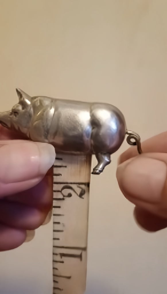 📏This vintage-inspired Figural Miniature Pig Tape Measure combines charming design with practicality, making it a delightful addition to your sewing kit! 🐖✨ Its antique nickel-plated brass finish adds a touch of retro elegance to your workspace.